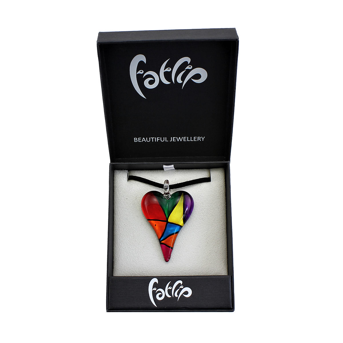 SWN551 - Multi-Coloured Glass Heart Pendant Necklace